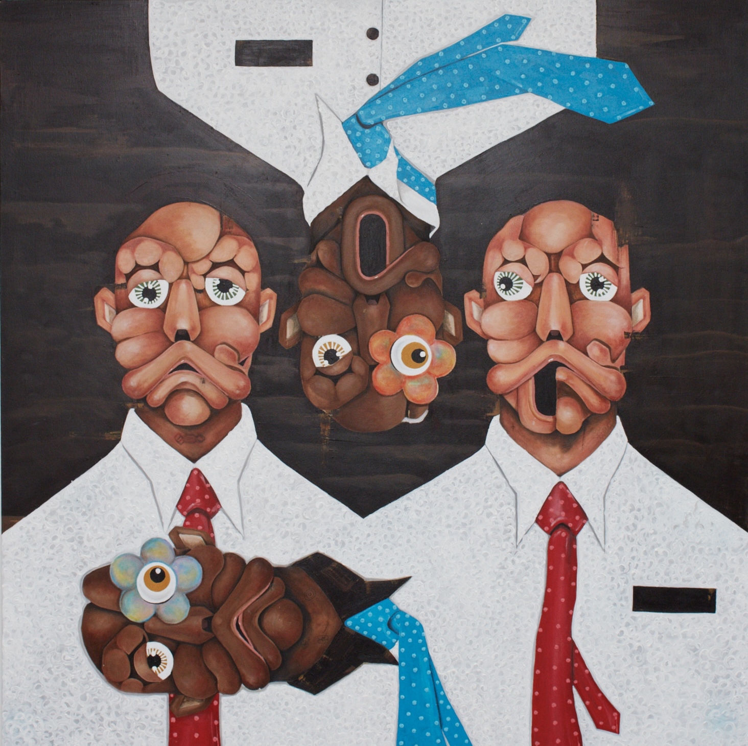 Acrylic, oil pastel, charcoal, color pencil on canvas